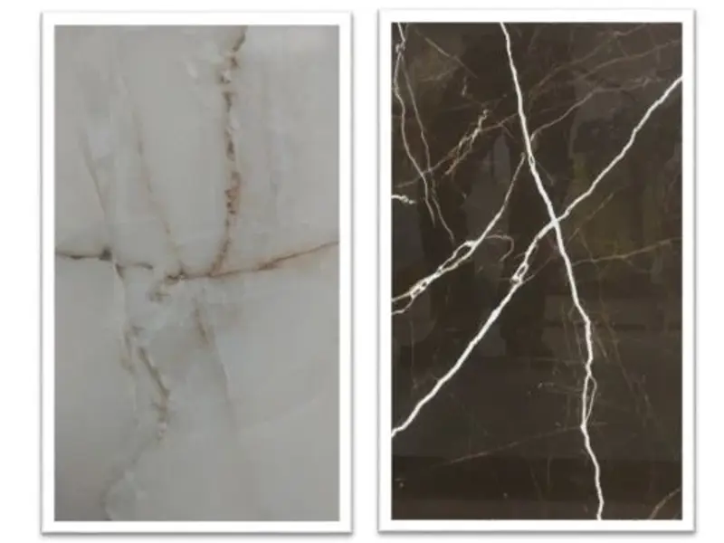 Designs with strong colours, such as a high proportion of black, which require very high ink laydown, are possible with the Xaar 2001+ printhead, as it is capable of up to 40 g/m2 laydown at 25 metres per minute line speed. With its 720 dpi resolution, the smallest features, such as rock veins, can be replicated accurately as well as reproduction of the subtle gradients found in onyx and marble.