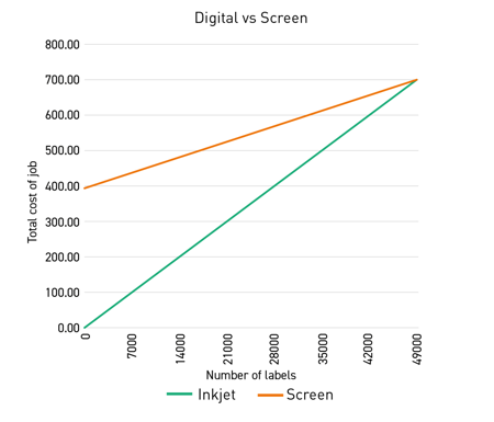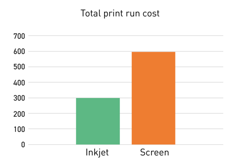 Shorter setup times and a higher utilisation rate of on average 30%, compared to screen printing, can often result in small run jobs being completed in much less time that it takes to set up the screens.
